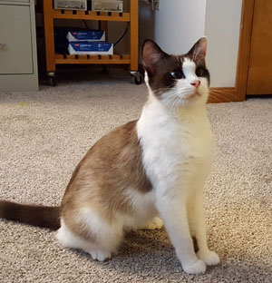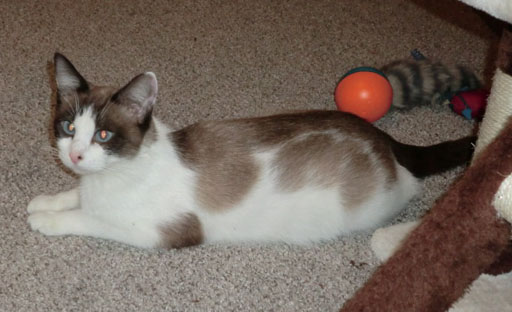 SARENA 4 year old Snowshoe/Siamese mix. She came to us as a foster with 5 kittens. After the kittens were adopted out we decided we would add her to our family in November 2016.
